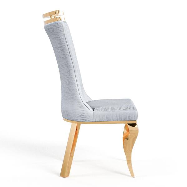 Weirsh Gray Fabric Upholstered Double Crown Dining Chairs with Gold Saber Legs (Set of 2)
