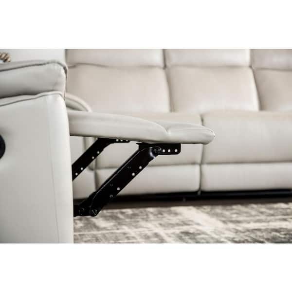 Willis 85.8 in. Welt Flared Arm Leather Blend Straight Rectangle Reclining Sofa in Taupe