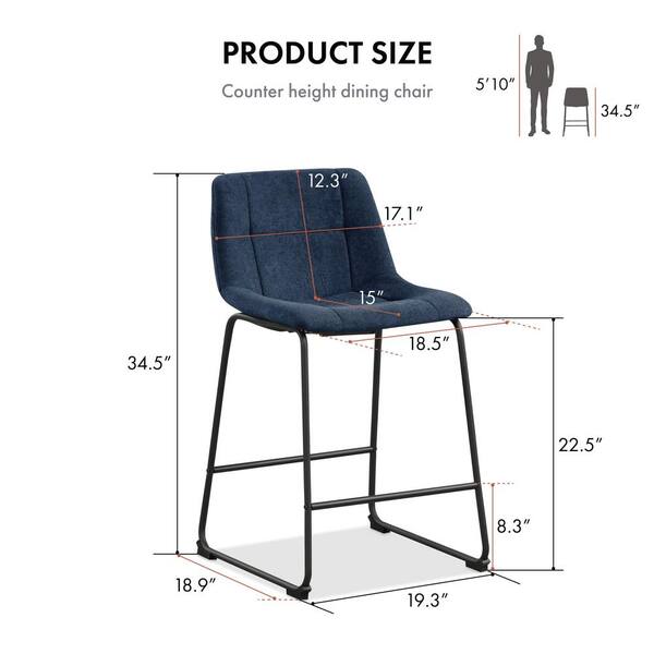 Winterfield 22.5 in. Blue Low Back Metal Counter Height Stool with Chenille Fabric Seat Set of 2