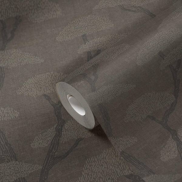Fusion Collection Chinoiserie Tree Motif Charcoal Matte Finish Non-Pasted Vinyl Non-Woven Wallpaper Roll