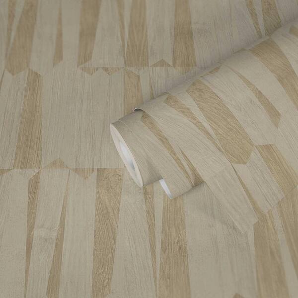 Fusion Collection Geo Point Wood Effect Motif Beige/Grey Matte Finish Non-Pasted Vinyl on Non-Woven Wallpaper Roll