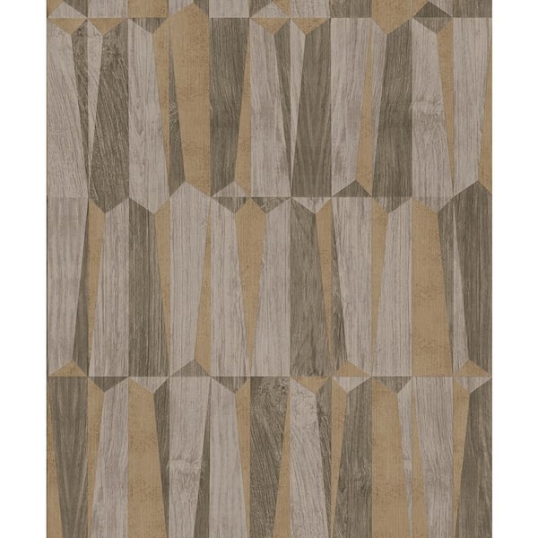 Fusion Collection Geo Point Wood Effect Motif Brown/Grey Matte Finish Non-Pasted Vinyl on Non-Woven Wallpaper Sample