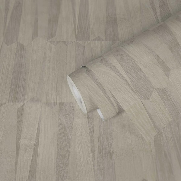 Fusion Collection Geo Point Wood Effect Motif Cream/Grey Matte Finish Non-Pasted Vinyl on Non-Woven Wallpaper Sample