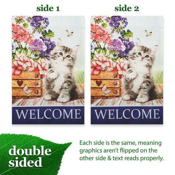 1 ft. x 1.5 ft. Polyester Welcome Kitten Flowers 2-Sided Garden Flag Printed Blockout