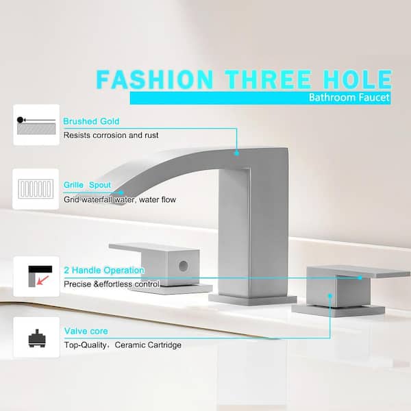 8 in. Widespread Double Handle Grille Shape Waterfall Spout Bathroom Sink Faucet with Pop Up Drain in Brushed Nickel