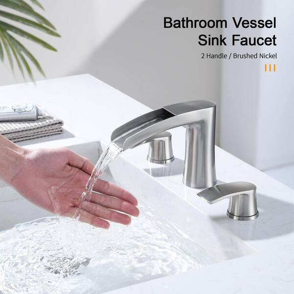 8 in. Widespread Double Handles Waterfall Spout Bathroom Sink Faucet with Pop Up Drain in Brushed Nickel