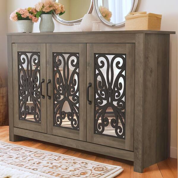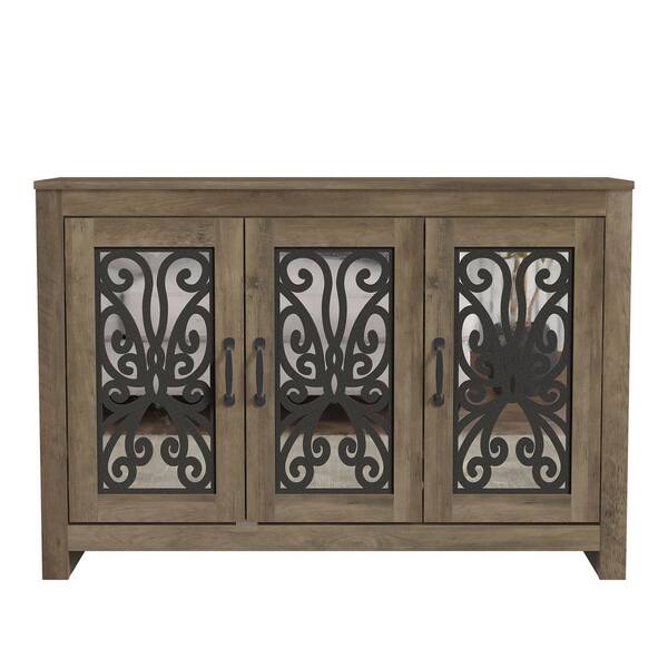 30 in. H x 44.4 in. W Knotty Oak with Ash Stone Wood 3-Doors Shoe Storage Cabinet