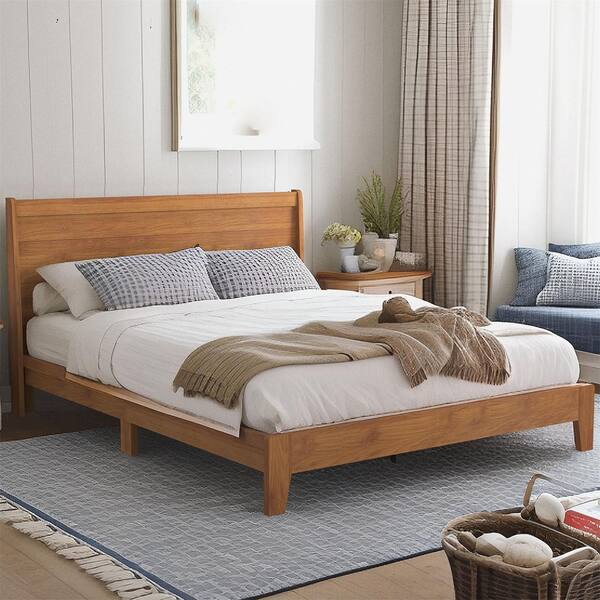 Abby Serene Amber Walnut Brown Queen Platform Bed with Headboard