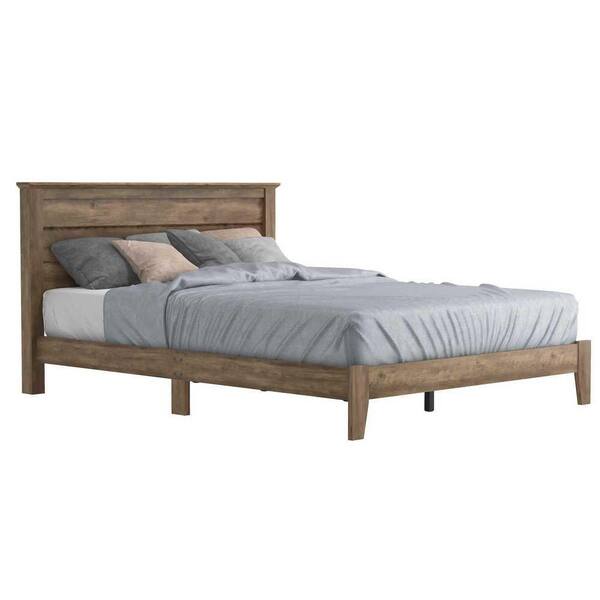 Beige Harlowin Knotty Oak Wood Frame Queen Platform Bed With Headboard