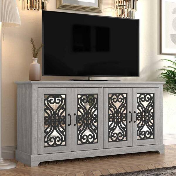 Calidia 59.1 in. Dusty Gray Oak with Gray Stone 4 Door TV Stand Fits TV's up to 65 in.