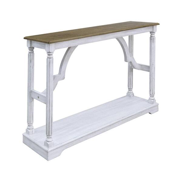 Delroy 45.9 in. Spray Paint White and Oak Rectangular Solid Wood Console Table