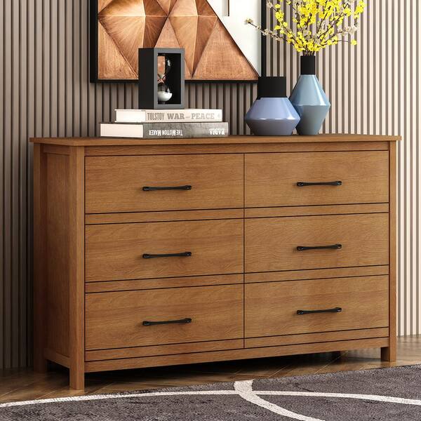 Kellie Amber Walnut 6-Drawer 47.2 in. Wide Dresser (Sturdy, Effortless Assembly with Interlocking Drawers)