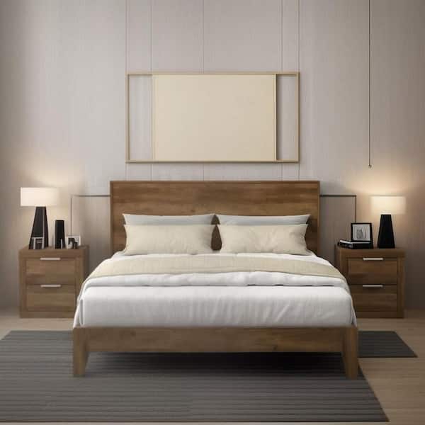 Payne Luxe 3-Piece Knotty Oak Queen Wood Bedroom Set with Harlowin Nightstand