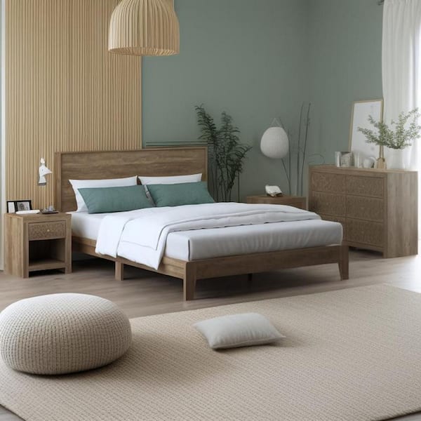 Payne Luxe 4-Piece Knotty Oak Queen Wood Bedroom Set with Avaro Dresser and Nightstand