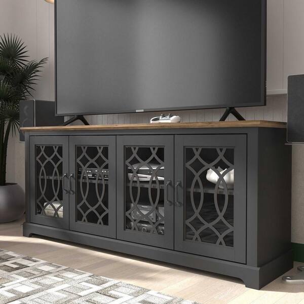 Raccon 68.2 in. Black with Knotty Oak Wide TV Stand Fits TV's up to 75 in.