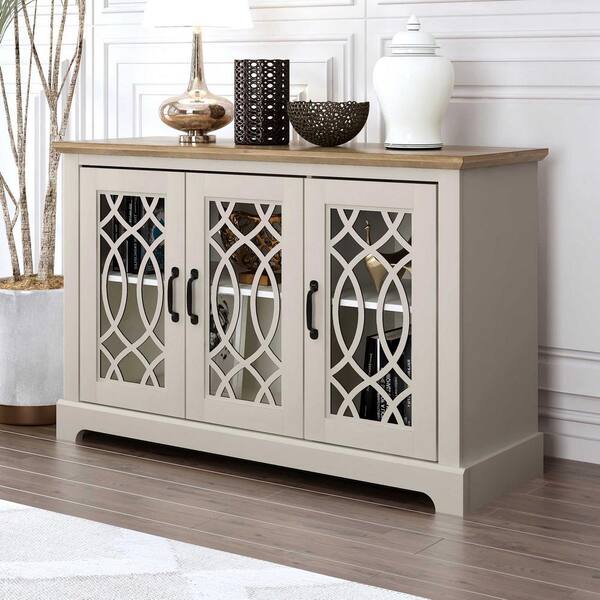 Raccon Ivory and Knotty Oak Wood 45.7 in. 3-Doors Sideboard with Adjustable Shelves
