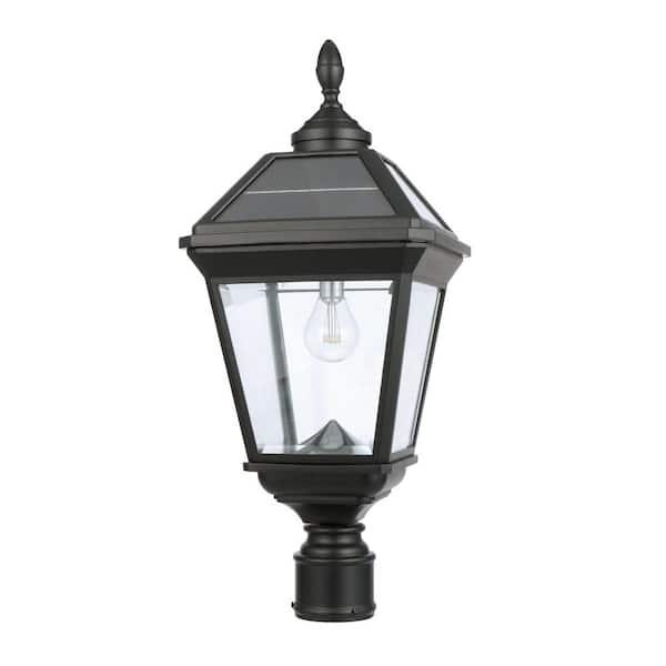 1-Light Black Cast Aluminum Solar Power Outdoor Weather Resistant Post Light Set with LED Bulb Included