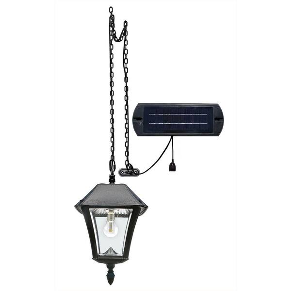 Baytown II Solar 1-Light Black Outdoor Pendant Chandelier Hanging Light With Remote Control For Pergola Gazebo Pavilion