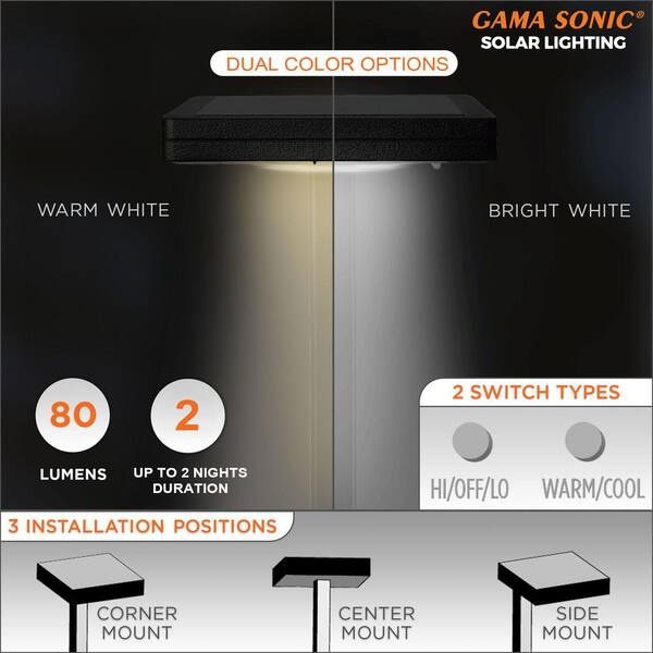 Contemporary Square Black Outdoor Modern Solar Dual Color Temperature LED Pathway Landscape Light w/ 3 Mounting Options