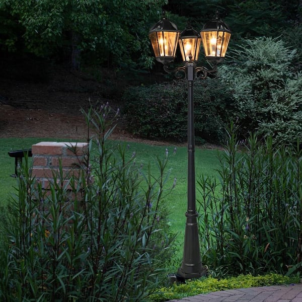 Royal Bulb Series 3-Light Black Aluminum Solar Outdoor Weather Resistant Post Light with 450 Lumen LED Bulb Included