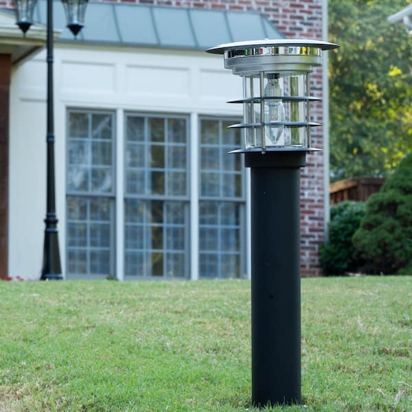 Stainless Steel Black Bollard Light Outdoor Waterproof Garden Solar Warm White LED Pathway Landscape Light