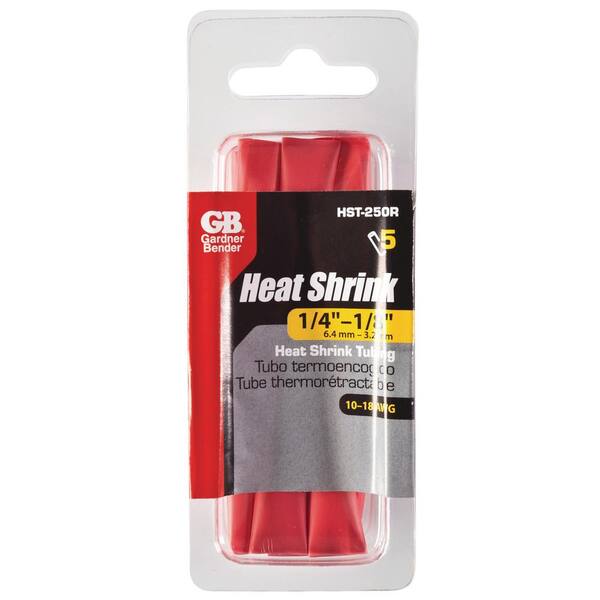 Heat Shrink Tubing, 1/4. in to 1/8 in. Red (5-Pack)