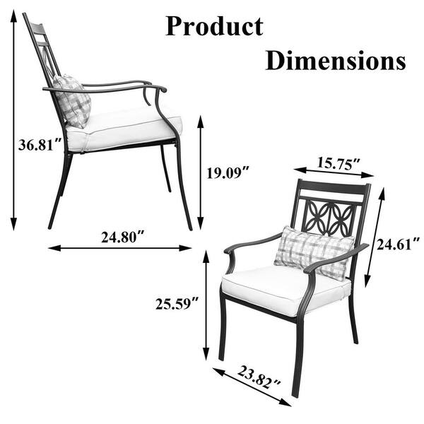 1 Piece Metal Outdoor Dining Chair with Beige Cushion and Pillow