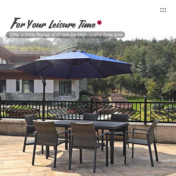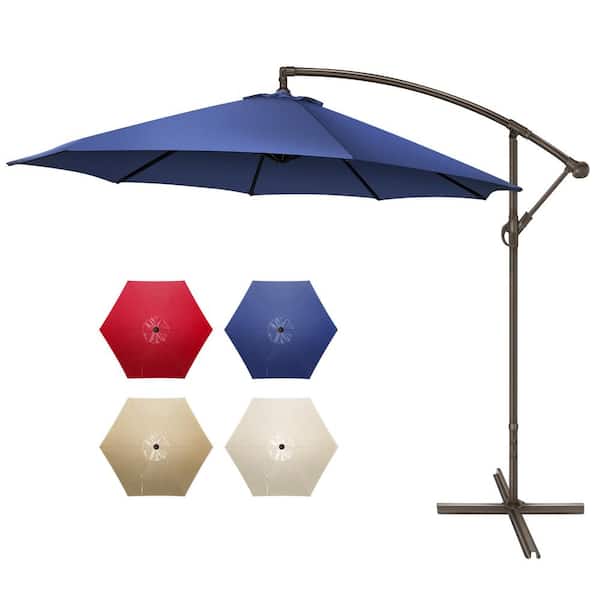 10 ft. Steel Cantilever Tilt Patio Umbrella in Navy Blue