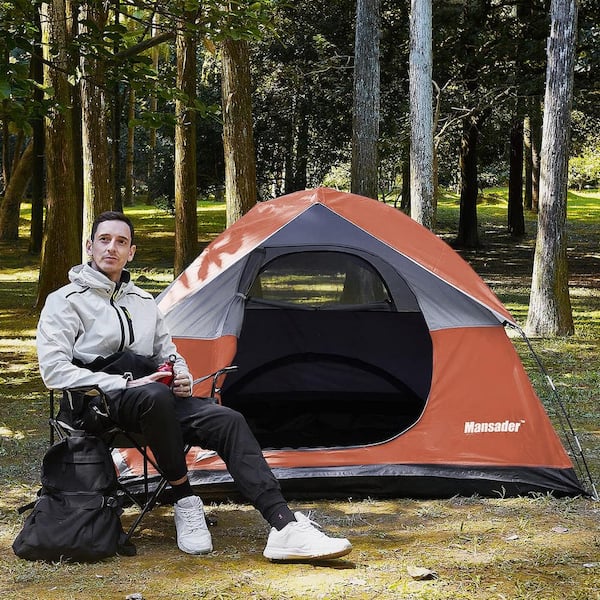 2-Person Mocha Red Outdoor Dome Camping Tent with Carry Bag