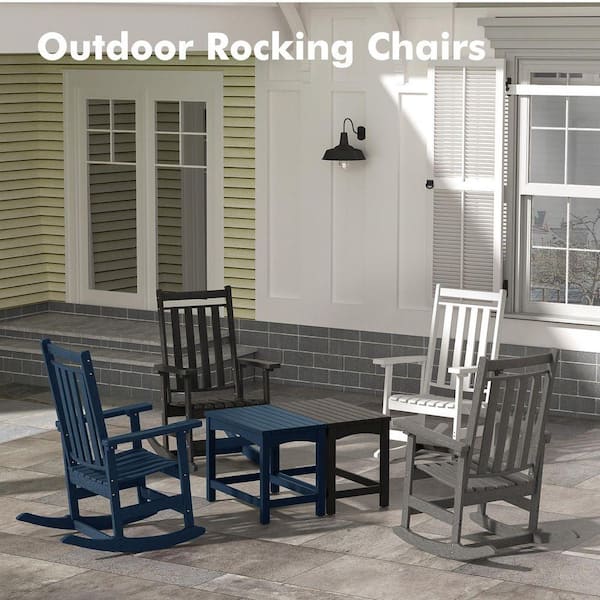 2-Piece Navy Plastic Outdoor Rocking Chairs Set