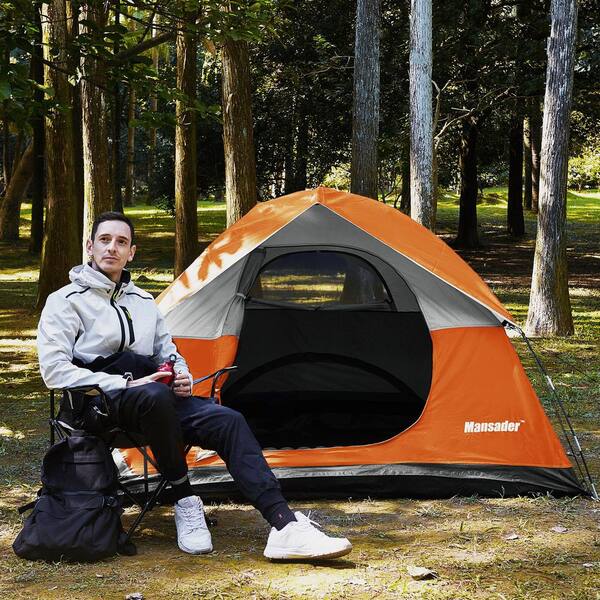 3-Person Polyster Outdoor Dome Camping Tent with Carry Bag in Orange