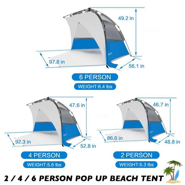 7.7 ft. x 4.4 ft. 3-4 Person Automatic Pop Up Camping Tent in Blue Waterproof Portable Hiking Instant Cabin