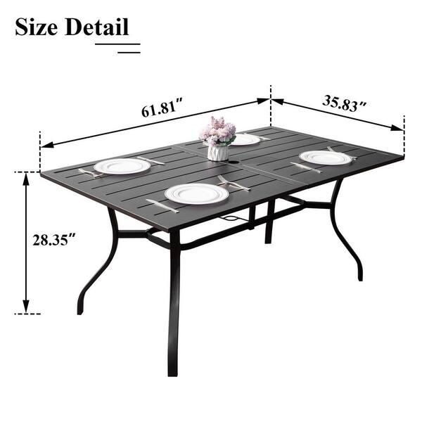 Black 7-Piece Metal Rectangular Outdoor Dining Set with Beige Cushions