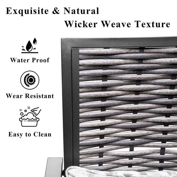 Swivel Metal and Wicker Outdoor Dining Chair with Gray Cushion and Pillows (2-Pack)