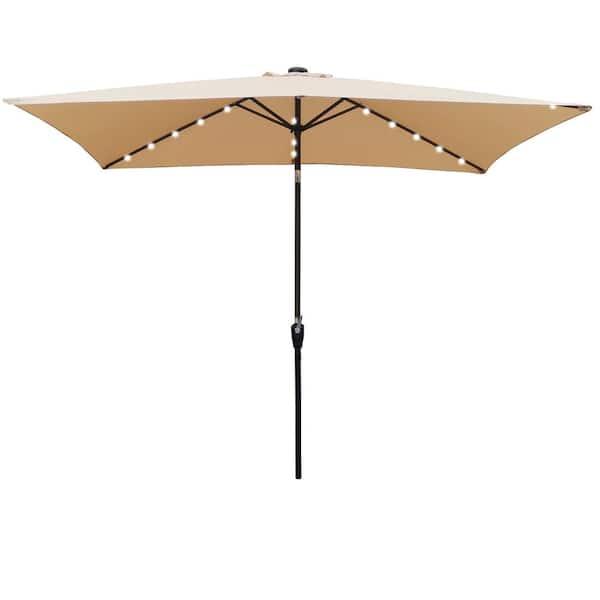 10 ft. x 6.5 ft. Metal Market Solar Tilt Patio Umbrella in Tan with Solar Led Lights and Crank
