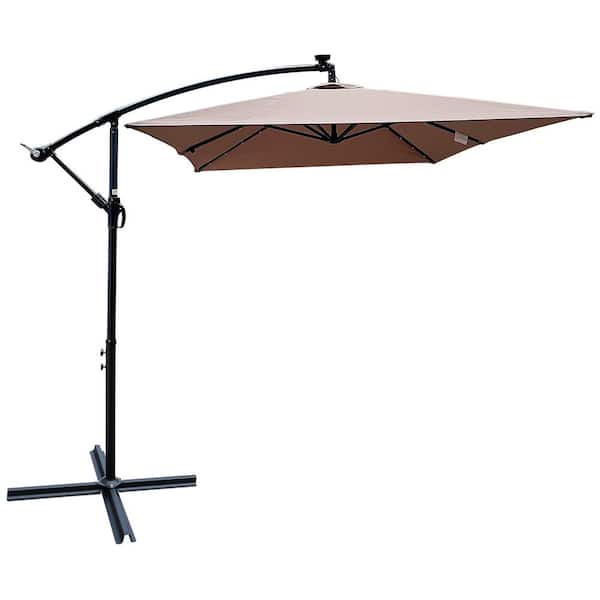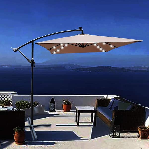 10 ft. x 6.5 ft. Steel Cantilever Solar Patio Umbrella in Mushroom Offset Umbrella with 26 LED Lights and Cross Base
