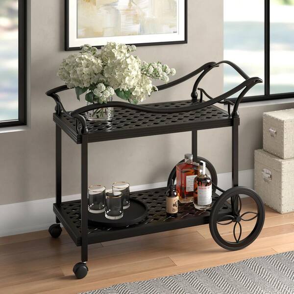 Castle Rock Dark Lava Bronze Cast Aluminum Outdoor Patio Serving Cart with Wheels
