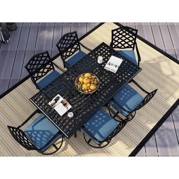 Halston Espresso Brown Rectangle Cast Aluminum Outdoor Dining Table with 2 in. Umbrella Hole