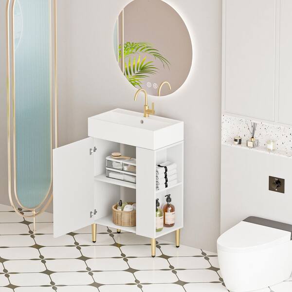 Timell 21.6 in. Modern Freestanding White Bath Vanity with White Ceramic Top, Right Side Cabinet, Shelves
