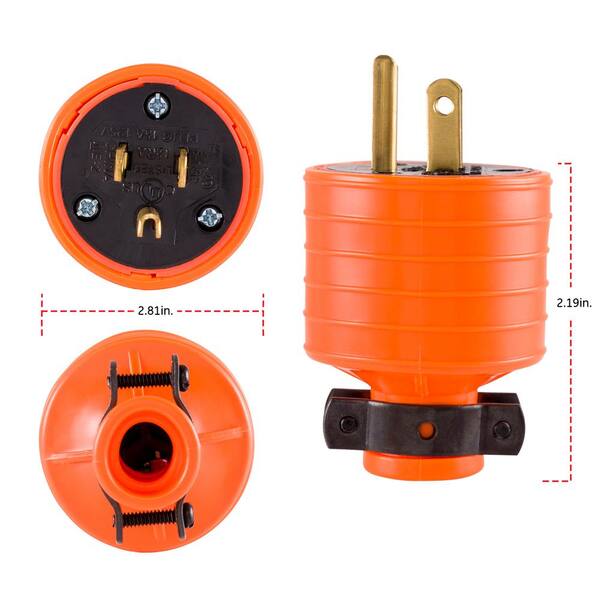 15 Amp Heavy Duty Plug Grounded with Black Metal Clamp, Orange