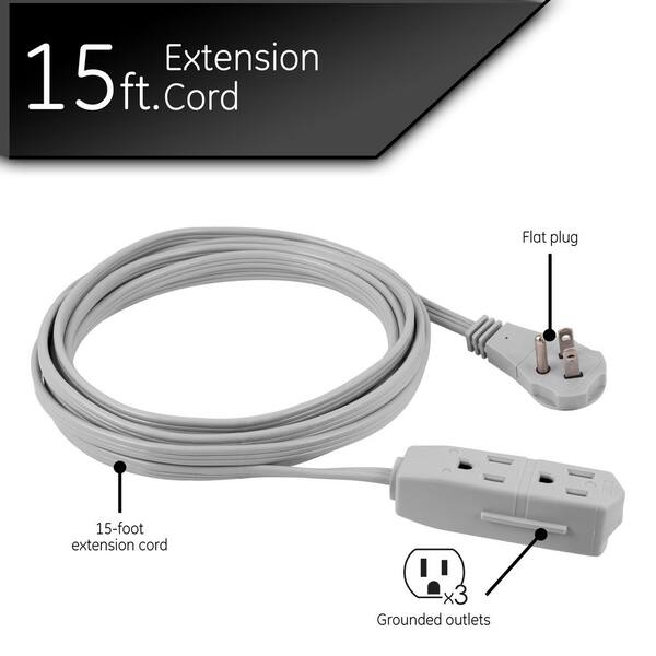 15 ft. 3-Outlet Grounded Office Cord with Right Angle Plug, Gray