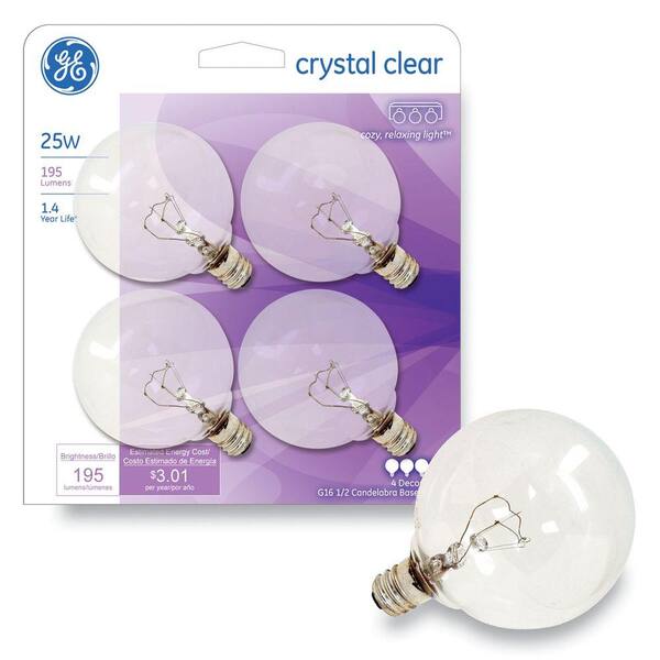 25-Watt Incandescent G16.5 Globe Candelabra Base Clear Light Bulb (4-Pack)