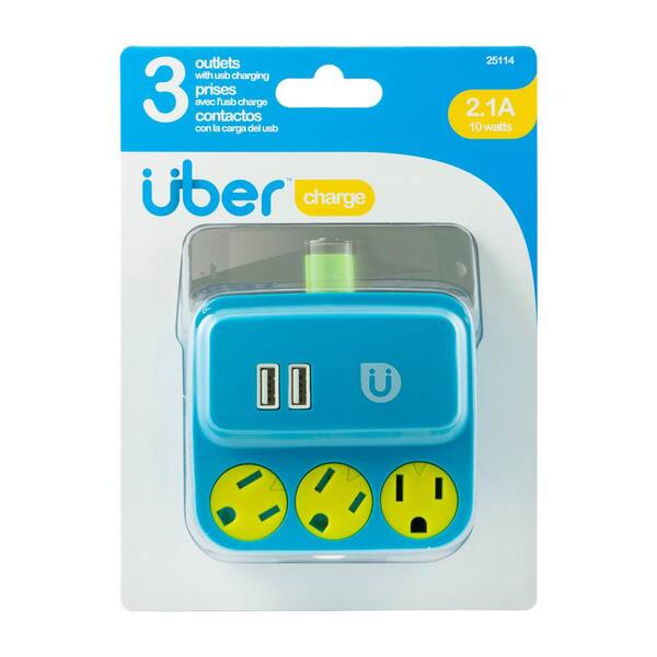 3 Grounded Outlet and 2-USB Port, 2.1 Amp Tap, Blue and Yellow