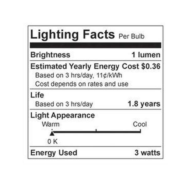 3-Watt Incandescent CA10 Bent Tip Candelabra Base Clear Flicker Flame Light Bulb