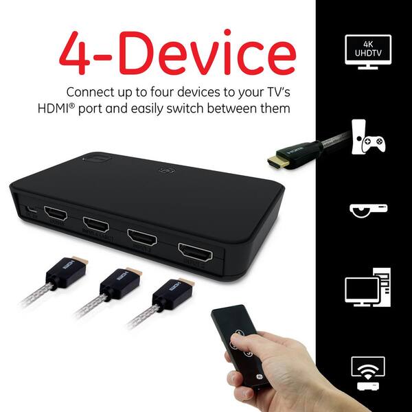 4-Device HDMI Switch with Wireless Remote 4K 1080p 60FPS Ultra HD Splitter