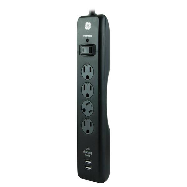 4 Outlet, 2 USB Ports, 1.0A Surge Protector, 3 ft. Cord