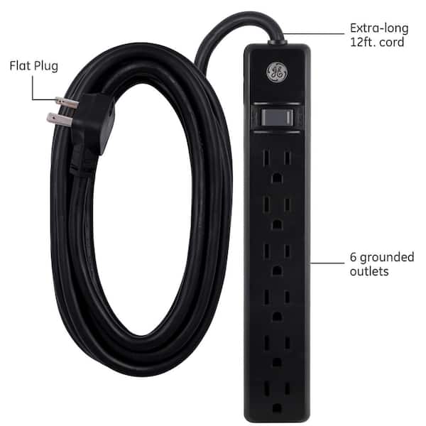 6-Outlet Grounded Power Strip with 12 ft. Long Extension Cord in Black