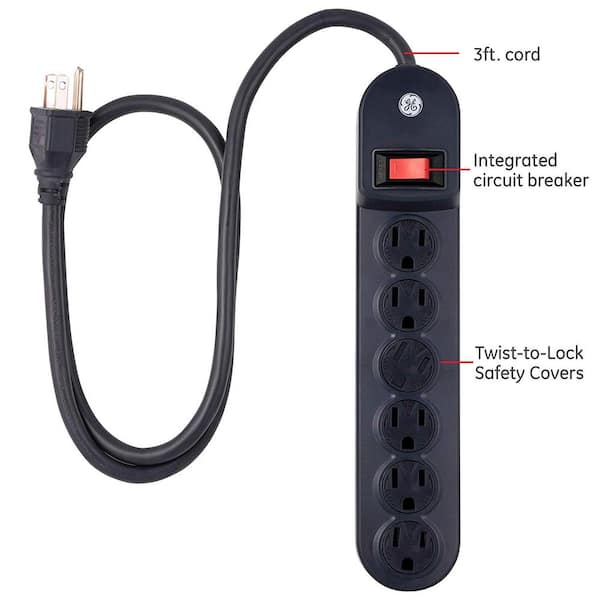 6-Outlet Power Strip with 3 ft. Extension Cord, Black