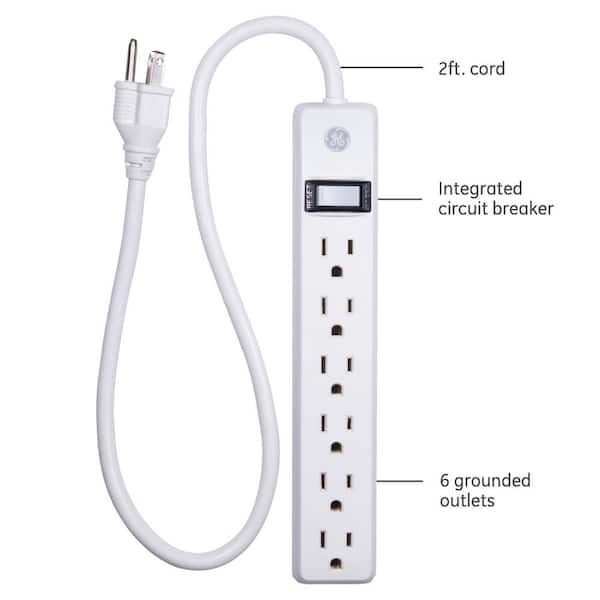 6-Outlet Power Strip with Integrated Circuit Breaker and 2 ft. Extension Cord, White