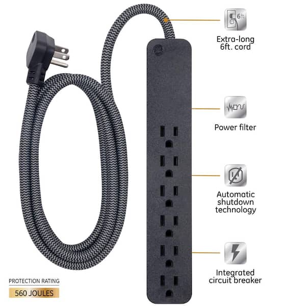 6-Outlet Surge Protector with 6 ft. Braided Extension Cord, Black